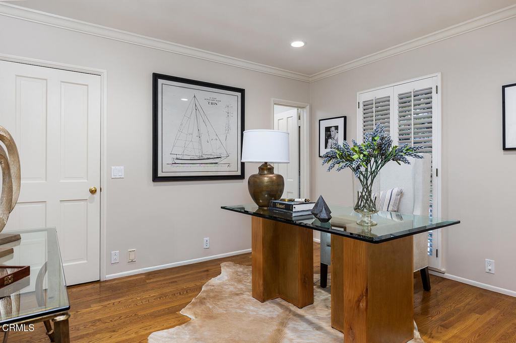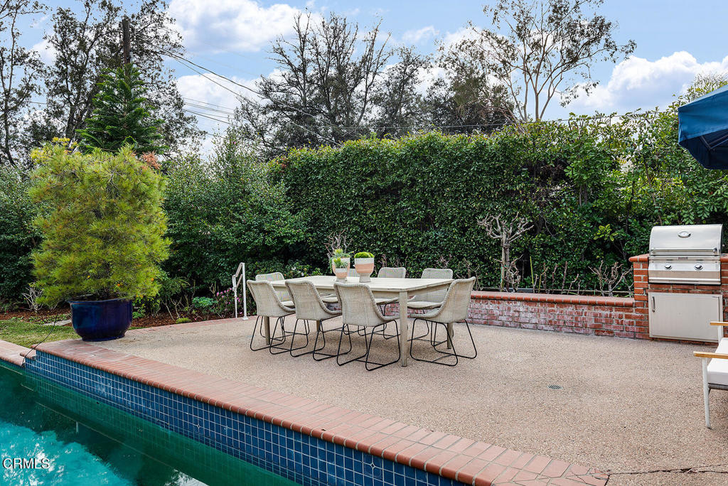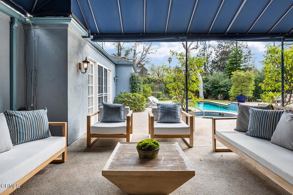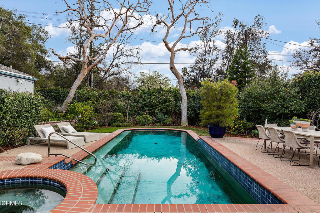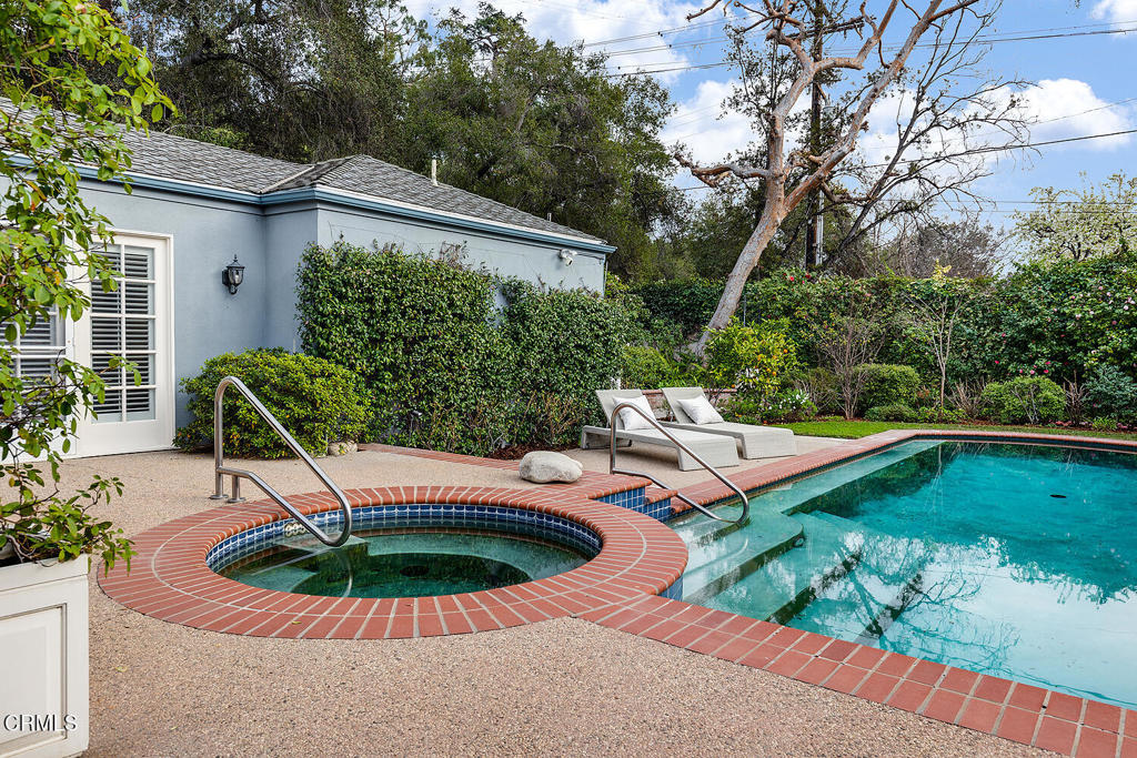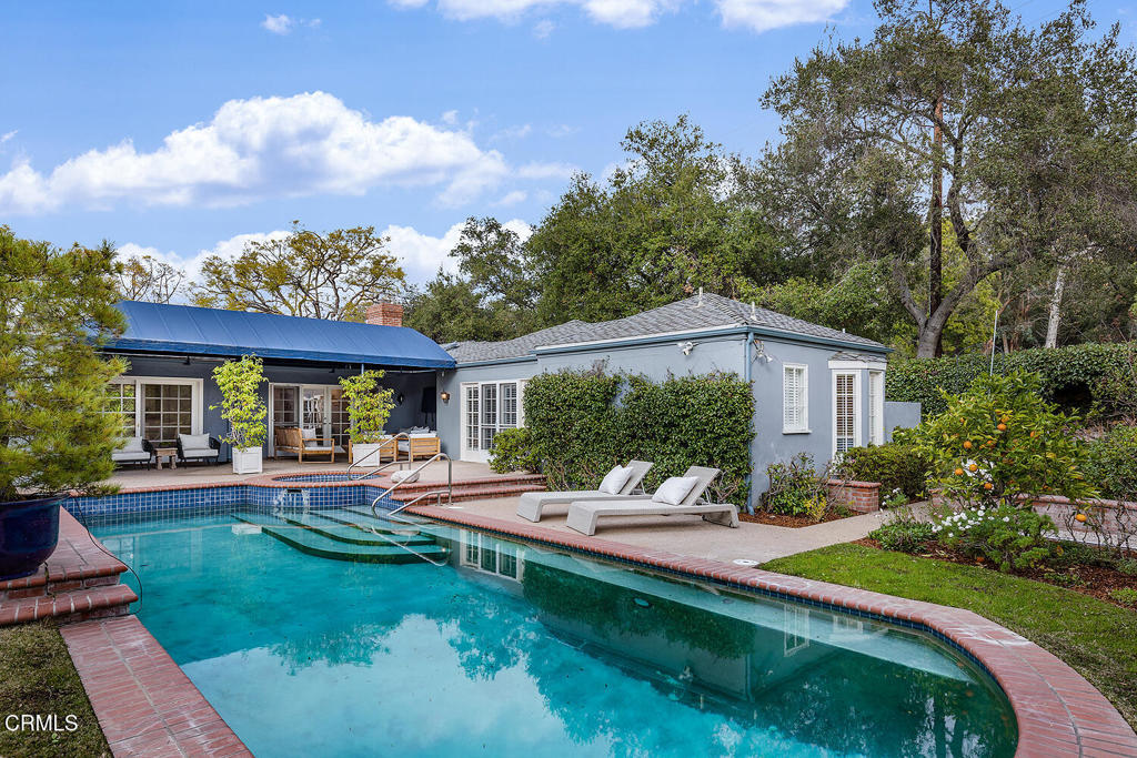 This exceptional South Arroyo residence is nestled on a private cul-de-sac, part of a charming enclave of five homes. This delightful single-story traditional home features a generous floorplan that gracefully wraps around a sparkling pool and lush, meticulously maintained gardens. Abundant French doors provide an airy, serene atmosphere and create an ideal setting for indoor-outdoor entertaining. In addition to the three spacious bedrooms, there's a versatile office/den with an attached bathroom, which could easily serve as a fourth bedroom. The primary suite offers dual bathrooms and two generous walk-in closets. The large family room, complete with a fireplace and wet bar, adds to the inviting appeal of this beautiful home.