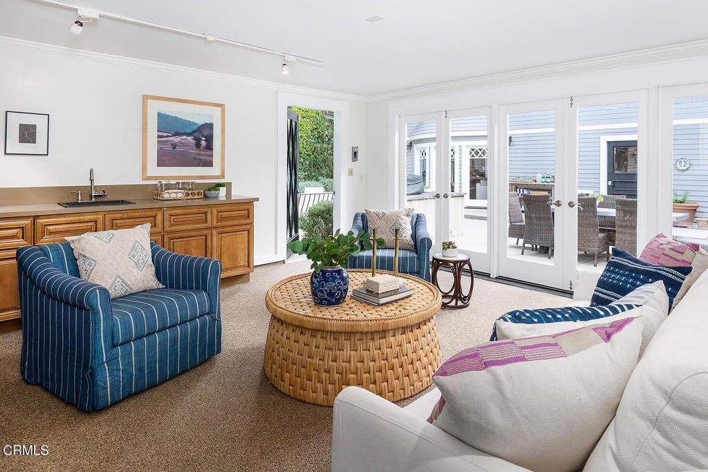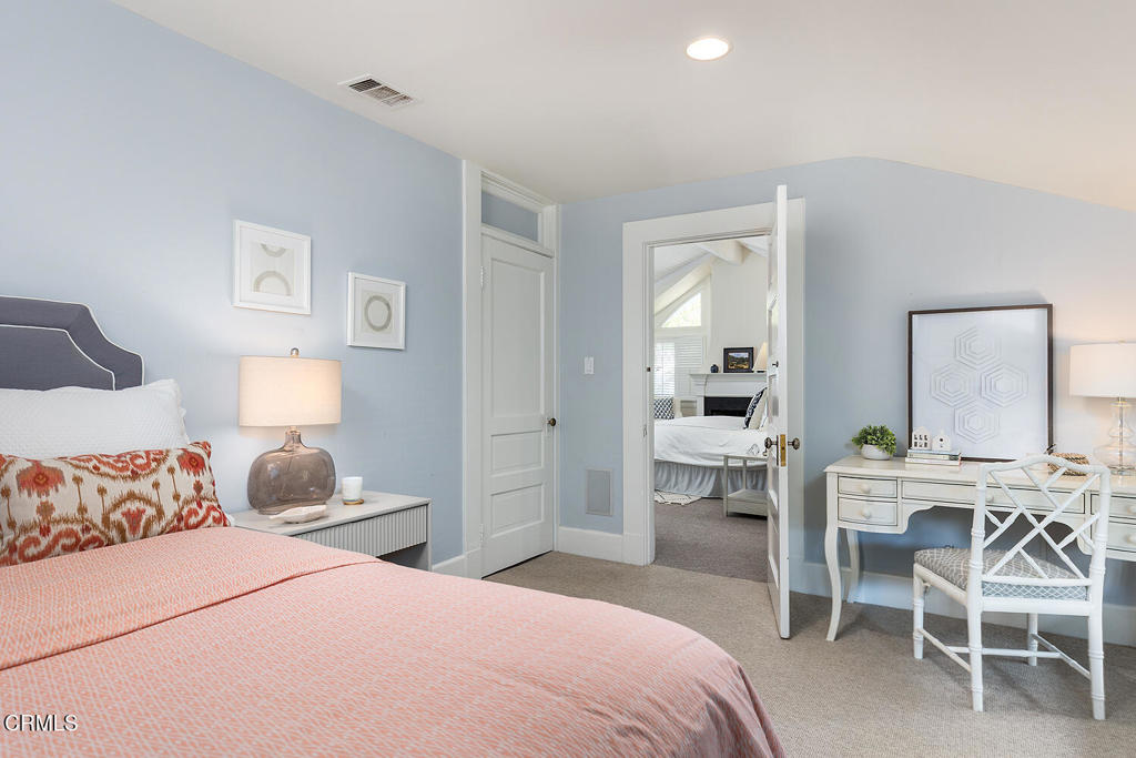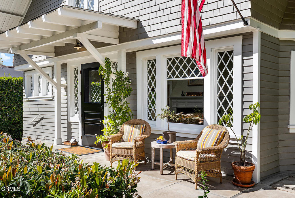 This captivating farmhouse-style residence, built shortly after the turn of the century, is situated on one of West Pasadena's most prestigious estate streets and showcases many architectural details of the era. The dramatic living room features 25-foot vaulted ceilings, a commanding fireplace, and streams of natural light through period diamond-paned windows.The dining room and butler's pantry are complete with custom built-in cabinetry, adding both charm and functionality. The generous floor plan offers four bedrooms, including a spacious primary suite with soaring ceilings and serene treetop views. An office adjacent to the living room offers a convenient workspace or library.The kitchen and family room flow seamlessly to a rear patio, creating an ideal setting for indoor-outdoor entertaining. The grounds offer a private garden setting with mature trees, natural landscaping, and towering verdant hedges. A distinctive river rock motif is carried throughout the property, from the low river rock wall and welcoming front steps leading to the expansive porch to the outdoor fireplace and spa with river rock detailing in the backyard.The garage currently serves as a large bonus room with a finished second-floor loft, providing ample storage and includes a split air system.